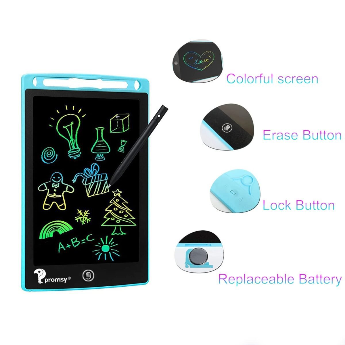 - One-Touch Erase: Clear the screen with a simple press of the button, making it quick and easy to start a new drawing or note.
